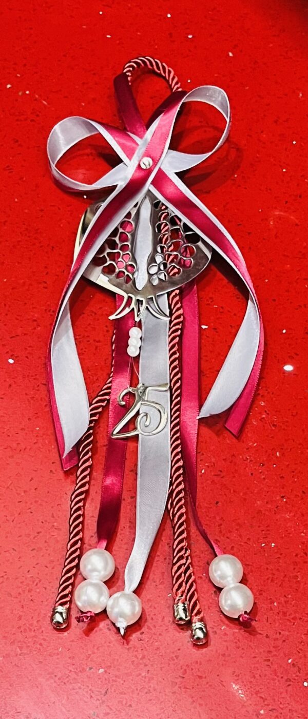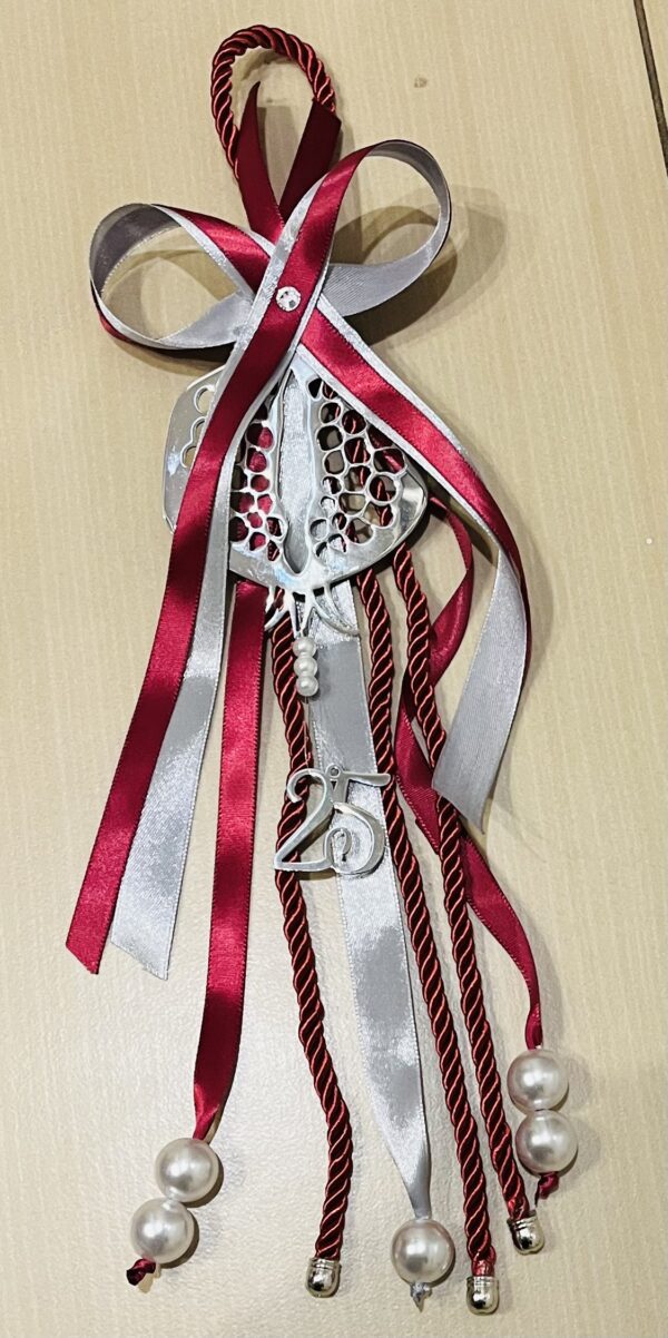 ΧΕΙΡΟΠΟΙΗΤΟ ΚΡΕΜΑΣΤΟ ΓΟΥΡΙ ΜΕ ΑΤΣΑΛΙΝΟ ΡΟΔΙ,ΚΟΡΔΕΛΕΣ ΣΕ ΜΠΟΡΝΤΩ ΚΑΙ ΓΚΡΙ ΚΑΙ ΠΕΡΛΕΣ